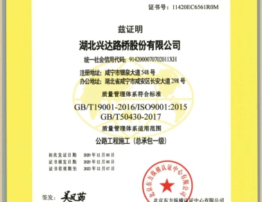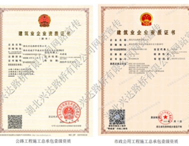企業(yè)資質(zhì)/ ENTERPRISE QUALIFICATION 營業(yè)執(zhí)照 建筑業(yè)企業(yè)資質(zhì)證書 質(zhì)量管理體系認證 職業(yè)健康安全管理體系認證 環(huán)境管理體系認證 全國交通運輸行業(yè)文明單位 12345>最后一頁