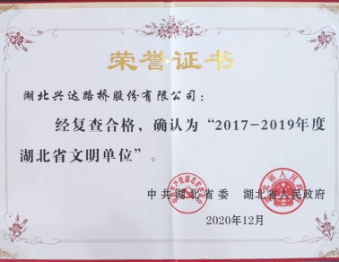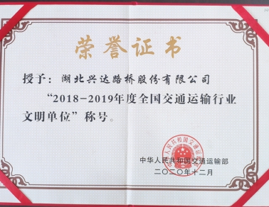 企業(yè)資質(zhì)/ ENTERPRISE QUALIFICATION 交通動輸企業(yè)安全生產(chǎn)標(biāo)準(zhǔn)化建設(shè)二級達標(biāo)企業(yè) 2013年度優(yōu)秀勞務(wù)班組 中國施工企業(yè)管理協(xié)會團體會員 2017-2019年度湖北省文明單位 2018-2019年度全國交通運輸行業(yè)文明單位 2019年度咸寧市建筑行業(yè)綜合實力十強 <123456>