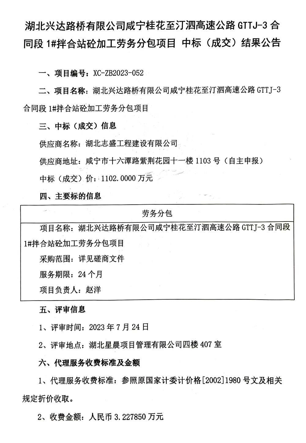 湖北興達(dá)路橋有限公司咸寧桂花至汀泗高速公路GTTJ-3合同段1#拌合站砼加工勞務(wù)分包項(xiàng)目 中標(biāo)(成交)結(jié)果公告 發(fā)布時(shí)間: 2023-08-04 瀏覽次數(shù): 0 作者: 興達(dá)路橋 上一篇: 湖北興達(dá)路橋有限公司(交投公司)事業(yè)部副經(jīng)理競(jìng)聘公告 下一篇: 湖北興達(dá)路橋有限公司南外環(huán)1#拌合站鋼結(jié)構(gòu)專業(yè)分包及混凝土采購(gòu)遴選公告